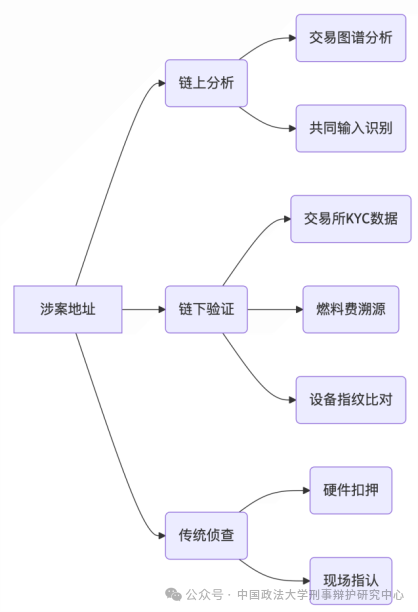 2.涉案地址识别与钱包控制权分析:在锁定可疑链上地址后,侦查机关还需要证明这些地址由特定嫌疑人控制。为此,警方综合运用链上链下证据,分析钱包控制权归属。首先,通过链上交易特征可以发现地址间的关联,从而识别地址背后的实际控制人。同一嫌疑人控制的多个地址通常存在某些共性,比如共用资金来源或最终汇聚于嫌疑人的主力钱包地址。常用方法之一是“共同输入”(Common Input)分析:如果多个比特币地址曾在一笔交易中同时作为输入,则极可能由同一钱包(同一主体)控制。再比如,在开设赌场类案件中,警方发现赌场庄家与结算人员往往共享某些收款归集地址,顺藤摸瓜即可锁定相关人员身份。其次,办案人员借助链下数据来确认地址控制权。其中,“交易所流水与KYC数据”是最直接的证据来源。如果涉案地址曾与某交易所账户发生过充提交易,警方可以通过交易所提供的实名信息将地址与嫌疑人对应起来。特别是很多犯罪分子需要购买燃料费(Gas费)以支付链上交易手续费,警方据此建立了“燃料费溯源”分析法:追查涉案地址用于支付手续费的代币购买记录。类似的,办案人员调取交易所提供的登录IP、设备指纹等技术信息进行比对:如果发现多个涉案地址曾由相同IP或设备登录管理,即可推断这些地址属于同一嫌疑人控制。再次,传统侦查手段也发挥作用。当嫌疑人被抓获或其电子设备被查扣后,警方会对其中的钱包应用、助记词记录等进行勘验。如果在嫌疑人手机、电脑中提取到涉案地址对应的钱包文件或私钥,那么地址归属证据就相当确凿。此外,警方还采取现场指认、交易回放等方式,让嫌疑人当场确认或重演其控制地址的转账操作,以进一步证明特定地址由其支配。这种链上数据与言词证据相结合的分析,使涉案地址与个人身份的关联得到法律上可靠的确认。