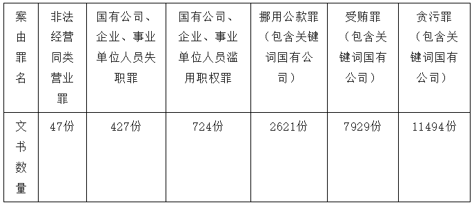 表2自2014年以来,近似国有公司、企业人员职务犯罪刑事裁判文书数量统计