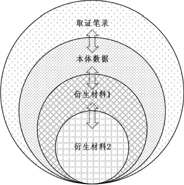 图3 “衍生材料2—衍生材料1—本体数据—取证笔录”一体结构