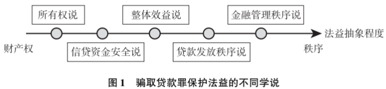 关于骗取贷款罪保护法益的定性存在所有权说、ink-id="link-1769777838579-0.4931598040128162">信贷资金安全说、金融管理秩序说等不同学说之争。所有权说认为本罪在于保护金融机构的资金所有权;周光权、孙国祥教授等支持金融安全说,认为骗取贷款罪意在规制侵害银行资金安全的风险行为;张明楷教授根据1996年《贷款通则》的规定,提出本罪保护的是贷款秩序,具体包括信贷资产所有权、信贷资产安全以及贷款使用的整体效益;还有学者认为,借贷人以欺骗方法获得信贷资金,使得符合资质的人没能获得或者少获得了信贷资金,导致信贷资金无法充分发挥助力国民经济的服务作用,因此,骗取贷款罪侵犯的法益是秩序法益,具体是指金融管理秩序中的贷款发放秩序。现有学说依照对秩序这一抽象法益的体现程度可分为(见图1):