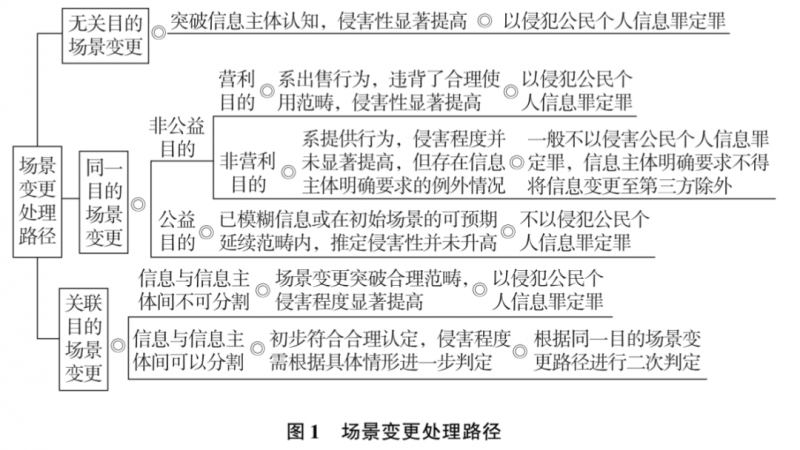 综上,信息的交互性确定了敏感个人信息的“初始场景”,若初始场景已侵犯信息主体的合法权益,则无论场景如何变更,刑法均可介入进行保护;若初始场景尚未侵犯信息主体的合法权益,则需依据场景变更进一步明确刑法对个人信息保护的合理性。
