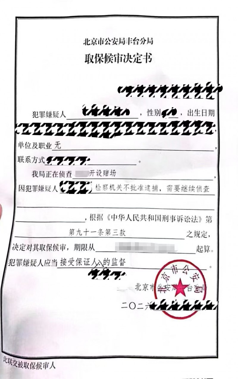 开设赌场罪(取保候审)