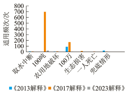 ①最高人民法院和最高人民检察院分别于2013年、2016年和2023年发布《关于办理环境犯罪刑事案件若干法律规定的解释》,根据其施行时间分别简称为《2013解释》《2017解释》和《2023解释》。