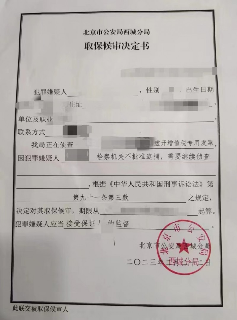 虚开增值税专用发票罪(取保候审)