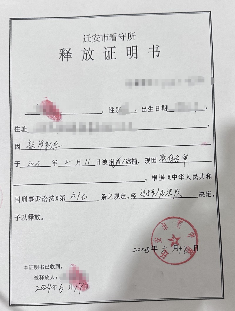 » 经典案例 » 敲诈勒索罪(释放)